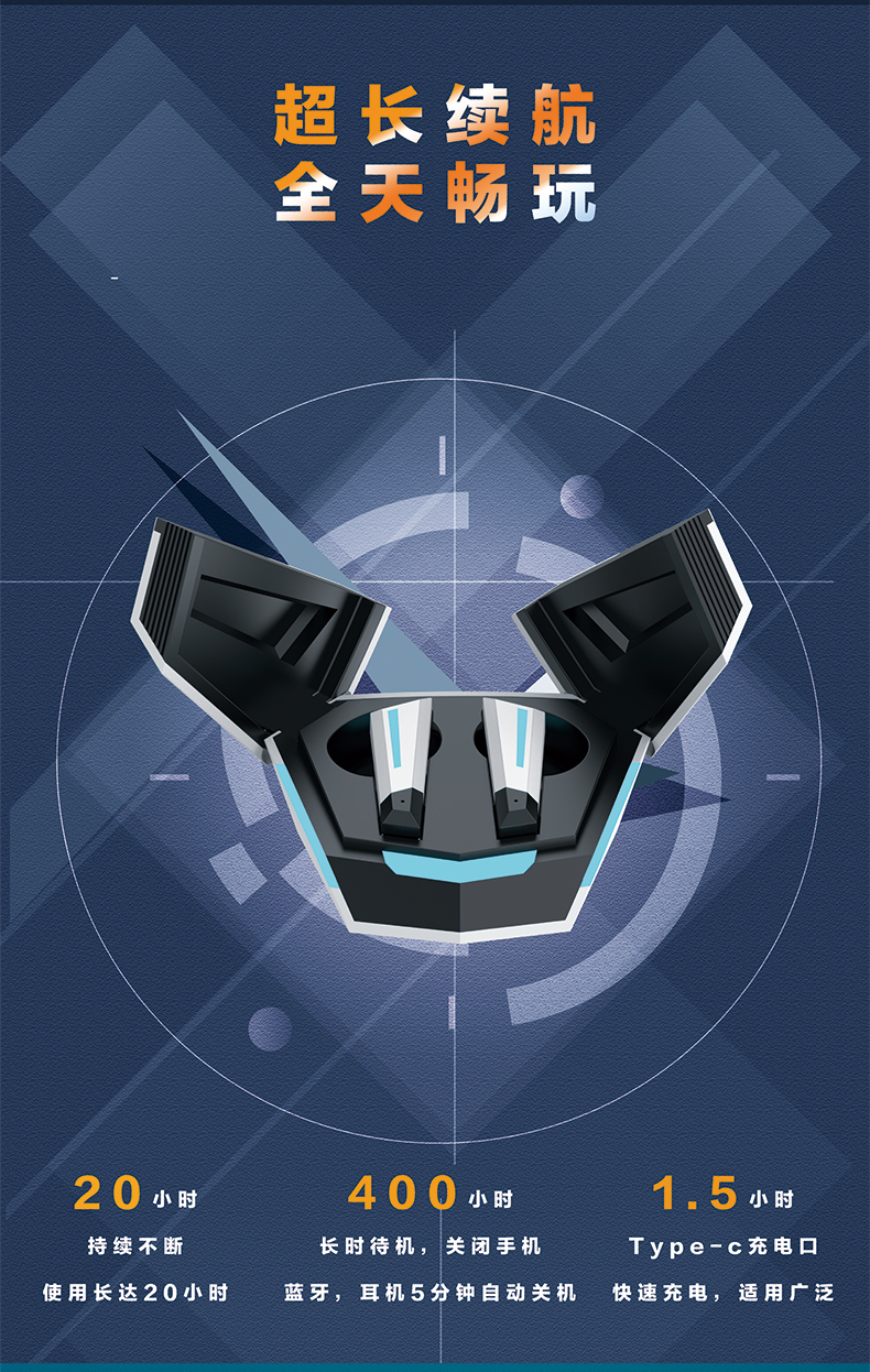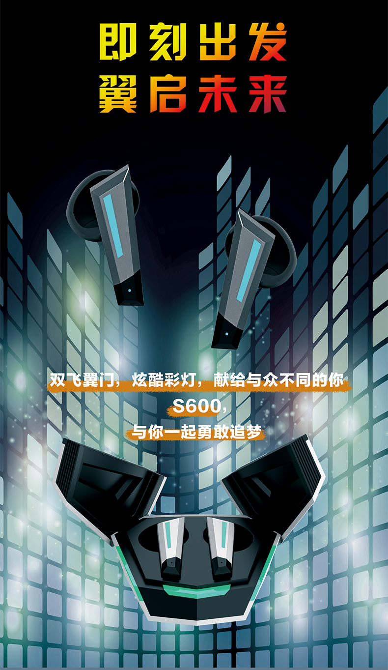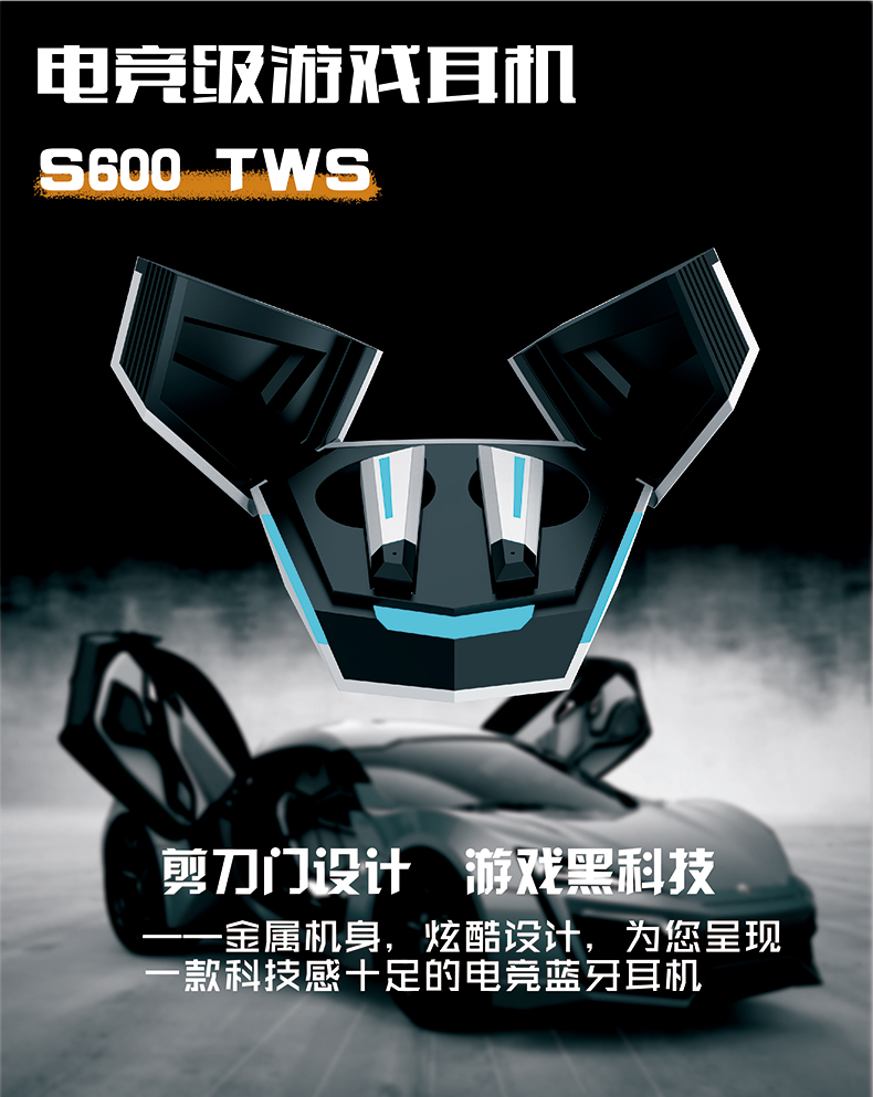 作为一款游戏定位的蓝牙无线耳机,金耳朵s600以其炫酷的超跑剪刀门设计,自带游戏黑科技感。耳机及充电仓带有冰蓝、莹绿呼吸灯效,沉浸式“电竞”氛围感爆表。银色加黑色的喷涂工艺,让人眼前一亮,恍若来自未来星际的神秘战甲。